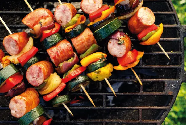 Estas deliciosas brochetas combinan trozos jugosos de longaniza con pimientos, cebolla y calabacín, marinados en aceite de oliva y especias. Cocinadas a la parrilla, en sartén o al horno, ofrecen un equilibrio perfecto entre la suavidad de la longaniza y la textura tierna de los vegetales. Ideales para una comida rápida, en una parrillada o como un plato principal sencillo y sabroso. Ingredientes: 500 g de longaniza (Marca choribi) 2 papas grandes (peladas y cortadas en cubos) 2 zanahorias (peladas y cortadas en rodajas) 1 pimiento rojo (cortado en tiras) 1 pimiento verde (cortado en tiras) 1 cebolla